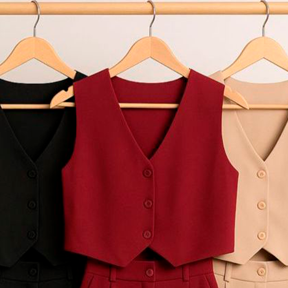 O colete em alfaiataria traz sofisticação e modernidade para qualquer look. Confeccionado em tecido estruturado, possui modelagem reta, decote em V e fechamento frontal por botões, garantindo elegância e versatilidade.